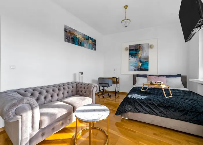 Wola 14Th Floor Studio - Parking & Balcony - By Rentujemy Warsaw находятся на расстоянии 25 минут ходьбы от Синагоги Ножиков и всего в 3 км от такого популярного места для семейного отдыха, как Варшавский зоопарк. Апартаменты располагают Wi-Fi и бесплатной чaстной парковкой для гостей, путешествующих на машине.